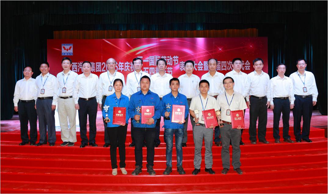 2016年4月28日下午,廣西汽車集團2016年五一、五四表彰會暨三屆四次職代會在五菱大禮堂舉行,此次大會表彰了2015年度行政、工會、團委各系統先進集體和先進個人。