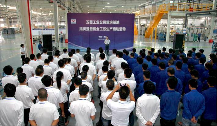 2015年8月18日上午,廣西汽車集團所屬公司柳州五菱汽車工業有限公司(簡稱:五菱工業公司)重慶基地揭牌暨后橋全工藝生產啟動活動在重慶舉行。五菱工業公司副總經理李薇旻、重慶基地項目團隊、客戶代表等參加活動并見證重慶基地揭牌。