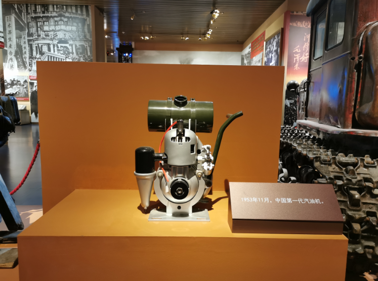 ? ??1101型汽油機展出于展覽館的第二部分第一單元——新中國建設的全面開展和社會主義制度的基本建立。1953年,伴隨著我國第一個五年計劃開始實施,五菱柳機在擺脫零打碎敲、小作坊式的生產經營方式下尋求到新的發展路子,攻關克難,成功試制出我國第一代汽油機,扎實助力新中國建設。