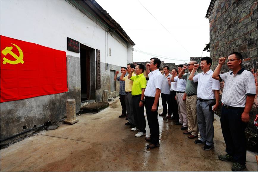 (圖為黨委中心組成員到柳城縣愛國教育基地——桂黔邊人民保衛團柳城武工隊活動舊址現場學習)